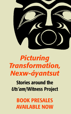 The hard cover book will be published in 2013 by Figure 1 Publishing, and feature the beautiful photos and moving stories around the Uts'am/Witness Project.