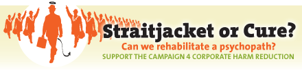 Harm Reduction is a loaded term. According to Wikipedia (the authority on everything!), “Harm reduction refers to certain controversial public health policies intended to reduce the harm associated with illegal activities such as illicit prostitution and drug use.” So when we applied it to corporations it was a tongue in cheek way of addressing the concept that the very nature and legal form of the corporation has led to its addictive law-breaking (and ‘psychopathic’) tendencies. What we are on about is not just harm reduction but social marketing (not to be confused with mere marketing by using social media). Two of the key trademarks of social marketing are to identify root causes, and also to change behavior or policy by working with target market based on where they are now rather than where we would like them to be. Harm Reduction becomes part of the bigger goal of positively changing the behavior of individuals, or of the systems that control their behavior.